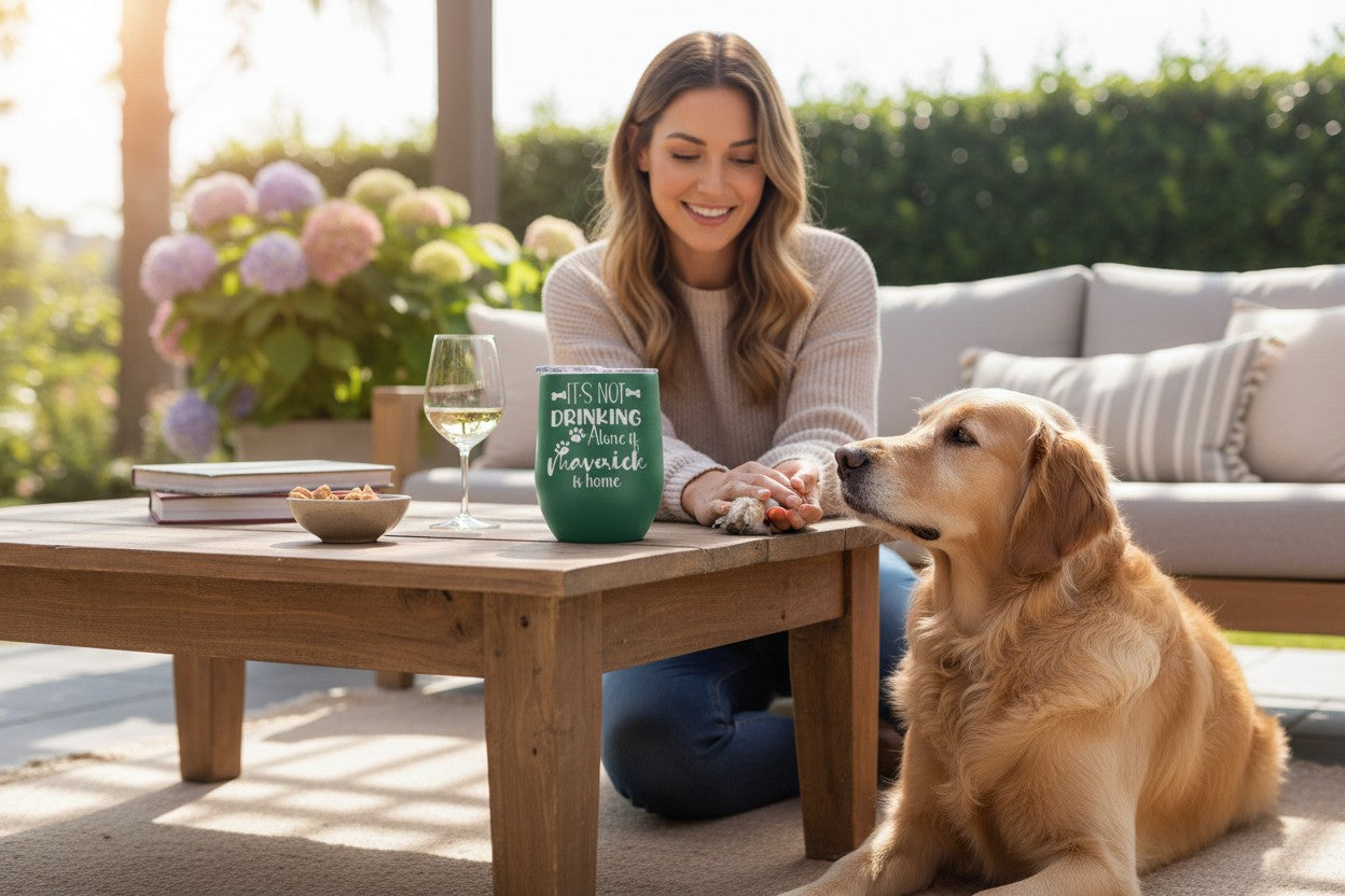 If your perfect night includes wine + dogs, this tumbler is for you. This funny dog-themed wine tumbler is laser engraved (not printed), so the design won’t peel or fade—just like your love for your pup.