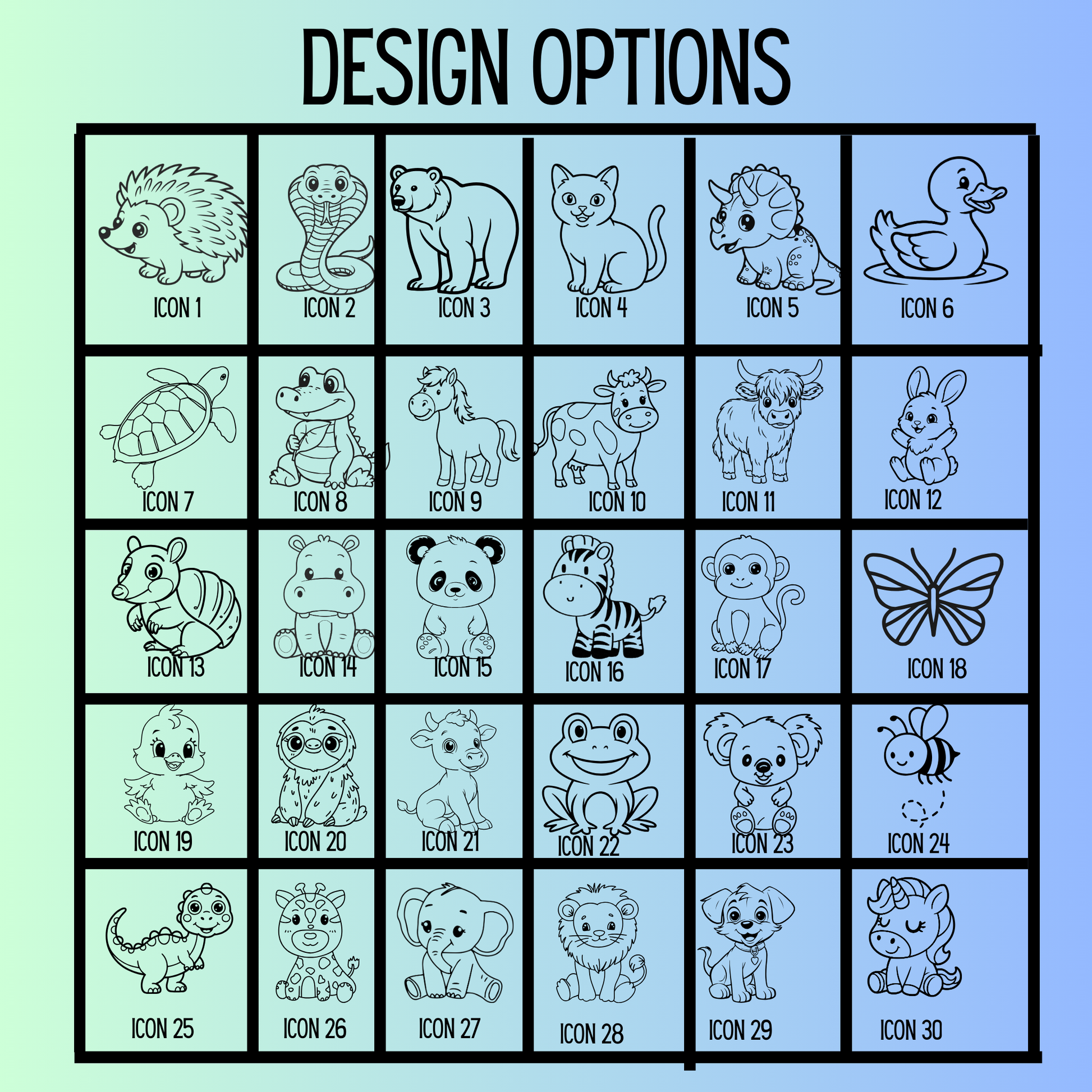 Our kids fun designs are engraved directly into the stainless steel for long-lasting quality. Each design includes a custom name paired with a single icon—perfectly sized and placed for a clean, polished look. This tumbler does not feature a full wrap design, making it ideal for simple, timeless personalization.