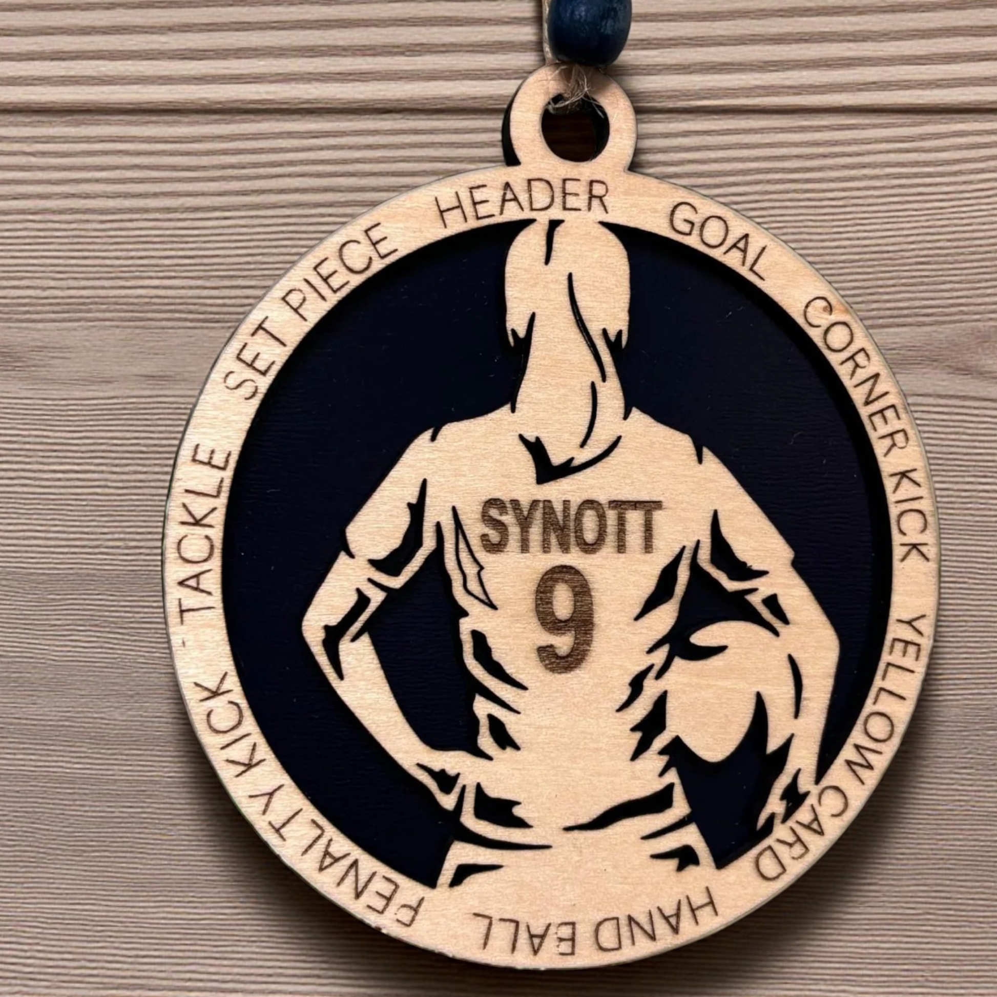 Personalized Soccer Ornament – Engraved Wooden 4" Keepsake with Name, Number & Year, Gift-Boxed